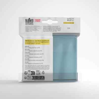 Szukasz swoich pierwszych koszulek na karty? Gamegenic: Just Sleeves - Board Game Sleeves to produkt dla Ciebie! Powstałe z myślą o początkujących stanowią najbardziej podstawowe rozwiązanie, jakie możesz sobie wyobrazić. Dzięki wykorzystaniu niezwykle przejrzystego polipropylenu skutecznie chronią karty przed zabrudzeniami i uszkodzeniami, a jednocześnie pozwalają zachować czytelność.   Opakowanie zawiera 150 przezroczystych koszulek w rozmiarze 44 x 67 mm (Mini American). Cechy: 100 koszulek w opakowaniu. Wysoka przejrzystość. Skutecznie zabezpieczają karty i pozwalają zachować je w nienaruszonym stanie. Zapobiegają zagięciom rogów, zadrapaniom i uszkodzeniom. Rozmiar koszulki: 44 x 67 mm. Bez związków kwasowych, bez domieszek polichlorku winylu. Wysoce przejrzysty polipropylen.
