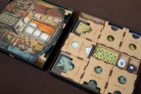 Spakowanie gry z dodatkami wymaga dwóch pudełek - z gry podstawowej oraz z dodatku Za palisadą. Takie rozwiązanie zapewnia spory luz, który umożliwia w przyszłości spakowanie nowych dodatków oraz w razie potrzeby rozbudowę insertu o nowe pojemniki (w miejscu dużego wypełnianiacza). Oba pudełka zamykają się bez uniesienia wieka.