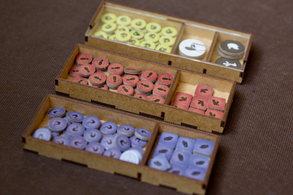 - 3 pojemniki na żetony oraz 1 pojemnik alternatywny używany przy żetonach z drewna,