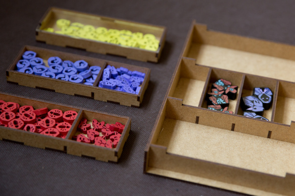 - pojemniki na żetony i znaczniki pomagają utrzymać ład na stole,