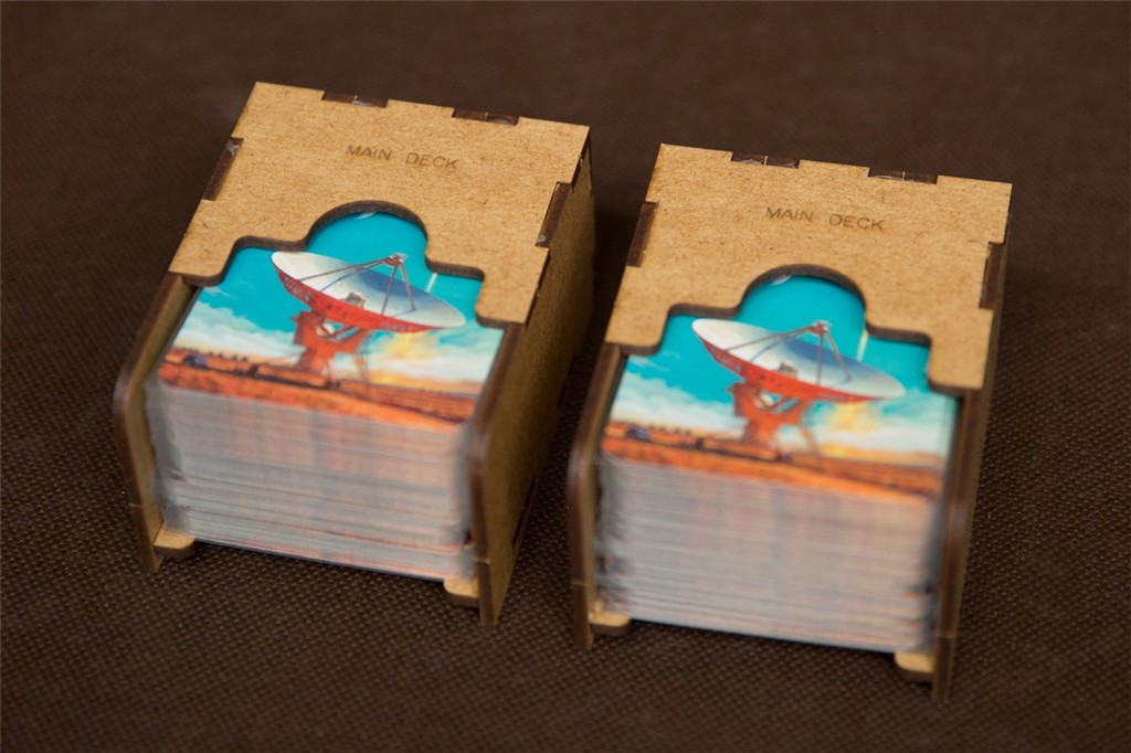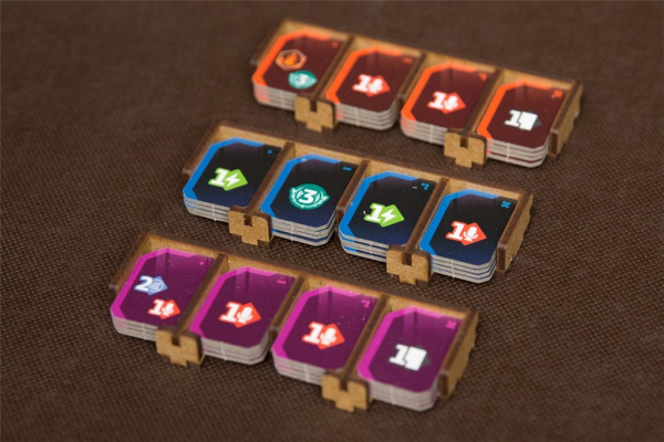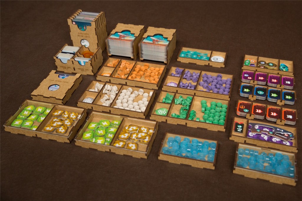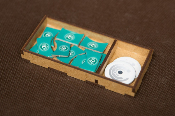 - pojemniki na talie główne i żetony technologii stanowią podajniki i zapobiegają rozpadaniu się stosów podczas rozgrywki,