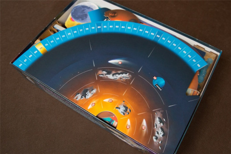 - 4 pojemniki / tacki z komponentami dla każdego z Graczy (znaczniki, sondy, znacznik rozgłosu, żeton 100/200 punktów zwycięstwa).