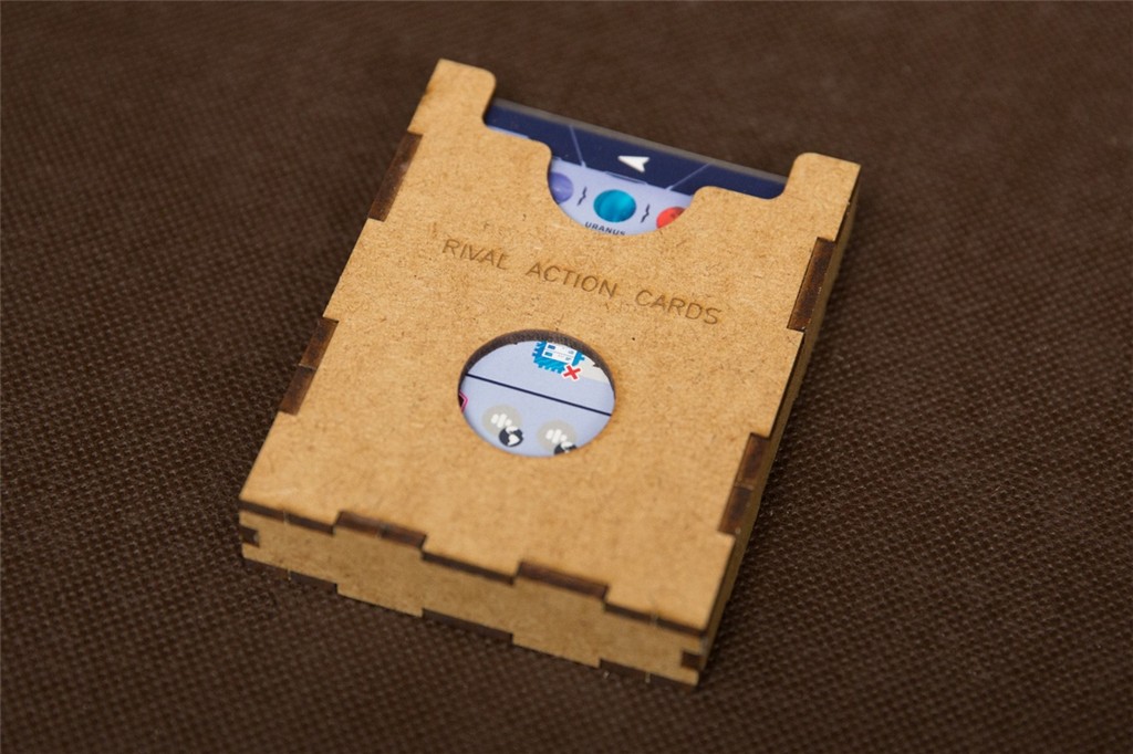 Insert do gry strategicznej SETI. Insert mieści karty w koszulkach klasy Premium o grubości do 110 mikronów. Na zdjęciach karty w koszulkach Rebel Premium (90 mikronów) - zalecamy zastosowanie tych koszulek. Insert jest przygotowany w formie "otwórz, wyłóż na planszę, graj" – wystarczy wyłożyć następujące elementy na stół po otwarciu pudełka: 2 podajniki na talie główne, 3 pojemniki / tacki do wyłożenia na planszę na kafelki technologii, 2 pojemniki / tacki na żetony danych, 2 pojemniki / tacki na znaczniki kredytów i energii, 4 pojemniki / tacki z komponentami dla każdego z Graczy (znaczniki, sondy, znacznik rozgłosu, żeton 100/200 punktów zwycięstwa). Rozwiązania wyróżniające insert reDrewno: Insert do gry SETI i dodatku: podajniki na karty mają dna pod kątem co zapobiega wysuwaniu się komponentów ze stosu podczas pobierania wierzchniego, pojemniki na kafelki technologii stanowią gotowe tacki do wyłożeni na planszę i zapobiegają rozsypywaniu się stosów ułożonych żetonów, pojemniki posiadają grawery ułatwiające spakowanie i organizację elementów. Dodatkowe atuty: wierzchnie pojemniki z żetonami i znacznikami są zasuwane pleksą co zapobiega wysypywaniu się elementów z uwagi na nieregularność kształtu plansz, szybkie i sprawne przygotowanie rozgrywki i porządkowanie po rozgrywce, pojemniki na talie główne i żetony technologii stanowią podajniki i zapobiegają rozpadaniu się stosów podczas rozgrywki, pojemniki na żetony i znaczniki pomagają utrzymać ład na stole, pudło domyka się bez uniesienia wieka, grę z naszym insertem można przechowywać w pionie i nic się nie wysypie, insert pozwala wygodnie przechowywać karty w koszulkach, układ pojemników w pudle jest intuicyjny.