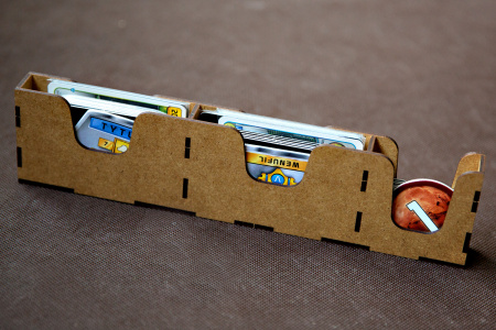 "Insert do gry Terraformacja Marsa i wszystkich dodatków, które wyszły w polskiej wersji gry (wg listy poniżej). W środku są dwa podajniki na karty (jeden podwójny i jeden pojedynczy). Insert mieści karty w koszulkach klasy PREMIUM (na zdjęciach bez koszulek)."