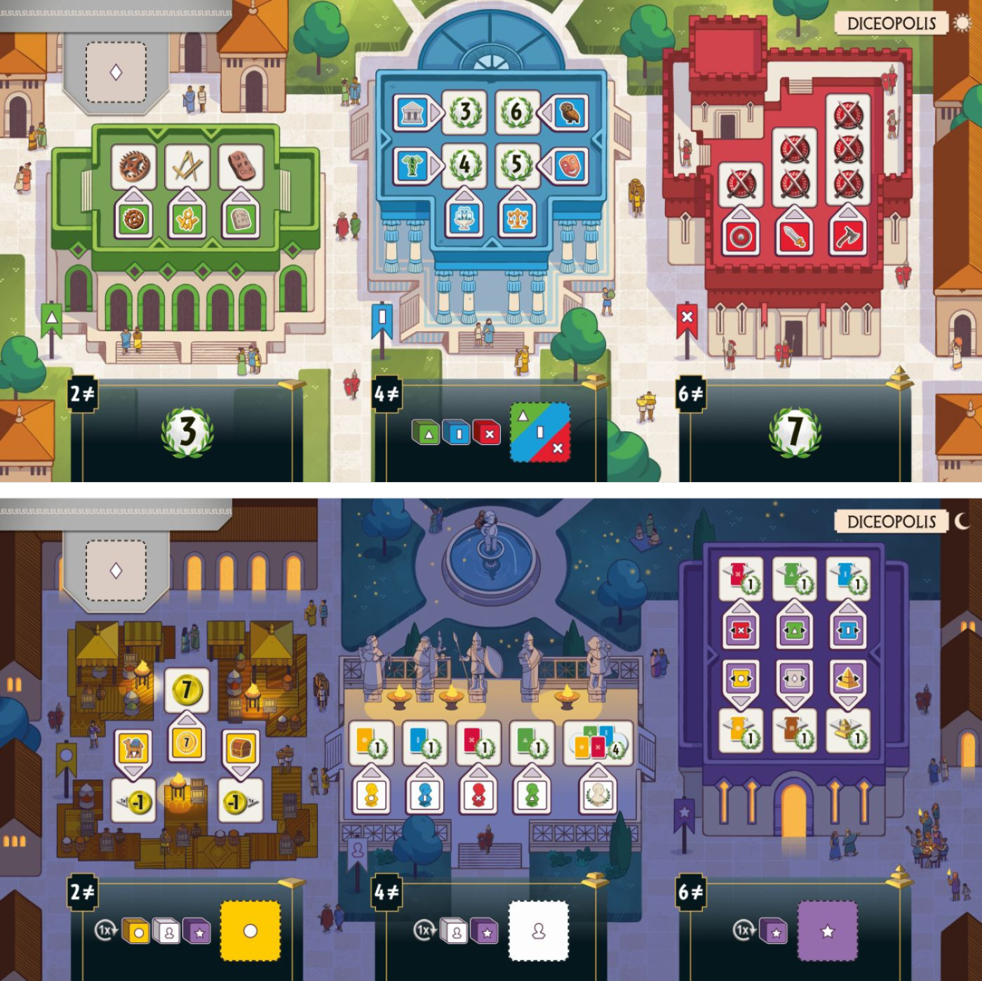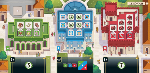 Wykreślanie kolejnych pól zapewnia nam określone efekty, a gdy ukończymy budynek, zdobywamy dodatkową premię. Kiedy któryś z graczy wykreśli 3. pole premii, uruchomiony zostaje koniec gry. Wszyscy dokańczają bieżącą turę i rozgrywają turę finałową, po czym przechodzimy do końcowego punktowania, które wyłoni zwycięzcę.