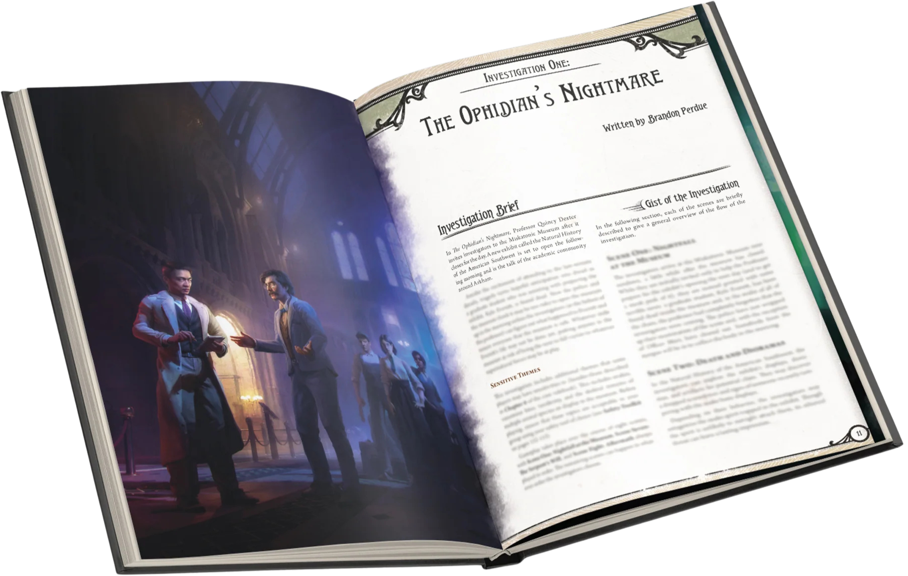 Arkham Horror RPG: Arkham Mysteries to zestaw 3 samodzielnych przygód przeznaczonych dla początkujących badaczy. Każda z nich ma nieco inną długość, jednak praktyczny podział na sceny zaprojektowane tak, by zajmowały około godziny, pozwala dopasować rozgrywkę do tego, ile czasu faktycznie mamy. Zbierz przyjaciół, przygotujcie swoje postacie i wspólnie szykujcie się na poszukiwanie prawdy w mroku otaczającym Arkham!