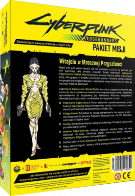 Cyberpunk: Edgerunners - Pakiet Misji to wszystko, czego potrzebujecie, aby zanurzyć się w uniwersum wielokrotnie nagradzanego anime i doskonałe wprowadzenie do oryginalnej gry fabularnej Mrocznej Przyszłości. Wewnątrz jest wszystko, co niezbędne do rozgrywki, w tym:
